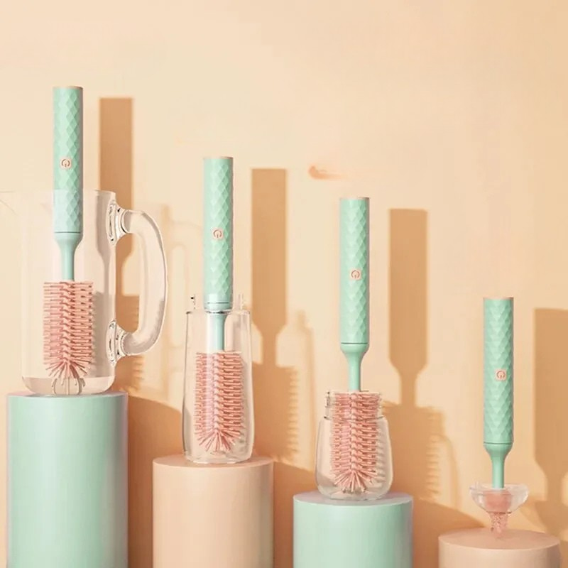 BottleSpin obraca silikonową szczotkę wokół własnej osi, dzięki czemu dokładnie czyści dno i ścianki butelki, nawet w wąskich modelach.
