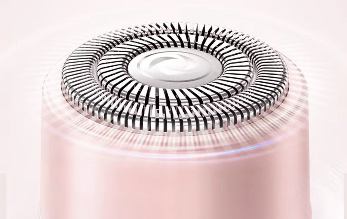 LumiSilk ma podwójną głowicę, która przycina i goli włoski, nie szarpiąc skóry jak tępe żyletki.